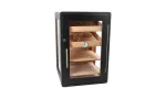 The Bari Deluxe commands attention with a beautifully black multi-lacquered finish and three-sided glass display, which makes it an ideal option to showcase your cigar collection. This humidor cabinet has up to 5 levels for storage, accommodating full boxes of cigars and/or individual cigars nestled into specially designed AirVent Spanish cedar trays with dividers to maximize organization and humidity flow. Cigars will be protected behind a dual-wall glass door with lock and key, along with two of adorini’s adjustable polymer-based deluxe humidifiers, to keep humidity at optimal levels. With a sealable opening for power cables in the rear wall, the Bari Deluxe cigar cabinet is also easily integrated with adorini’s powerful Cigar Heaven electronic humidification system, available separately.