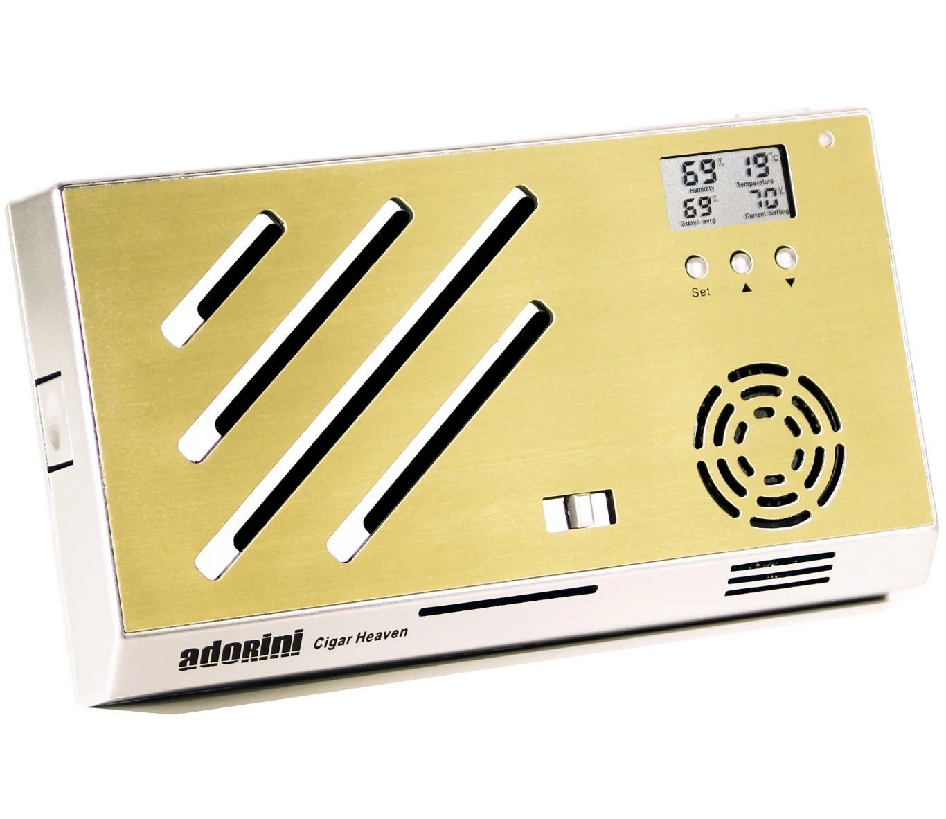 Adorini cigar, great heaven, perfectly regulates the humidity in my Humidor Venezia Large Deluxe. Digital display can be read without effort. Humidity also averaged over three days, the temperature was perfect. Only downside: adhesive not strong enough to keep the humidifier on the cover.