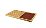 The adorini Cigar Service Tray with Red Insert is an elegant and practical way to stylishly present your cigars. This high-quality tray made of cedar wood is perfect for use in hotels, bars, cigar lounges, or private homes. The red insert made of fine Italian smooth leather protects your cigar accessories from scratches and ensures a secure grip. The tray features eight slots that provide space for cigars, which can also be stacked. It accommodates all cigar formats up to a length of 18.5 cm and measures 34 x 19.5 x 1.3 cm. The adorini serving tray is also available without the red leather insert in our shop.