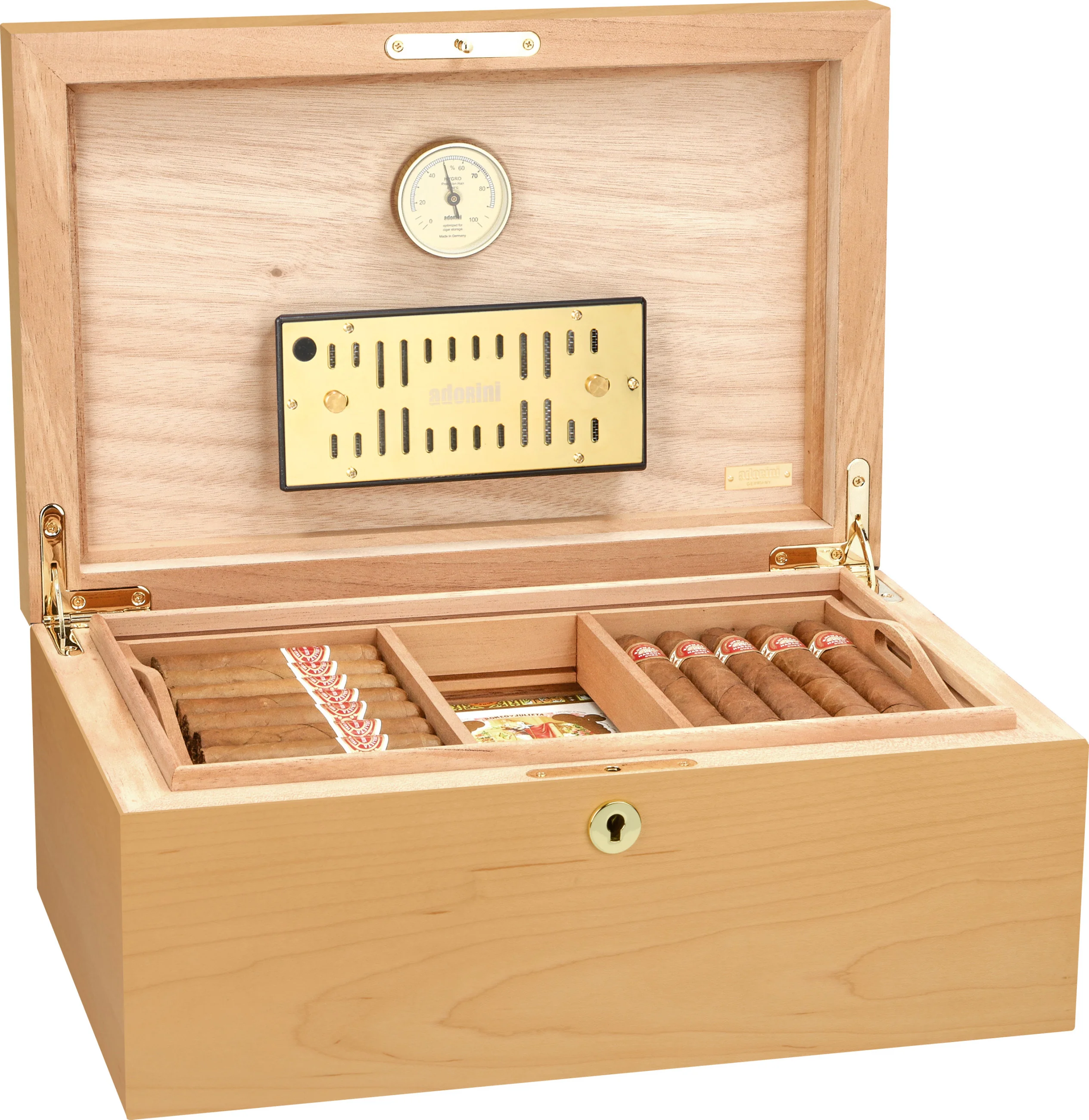 The adorini Humidor European Maple Specially Selected Grande is an elegant Grande-sized humidor from the Specially Selected collection, newly introduced in 2025. The name "Specially Selected" stands for carefully selected real wood veneers of European origin.