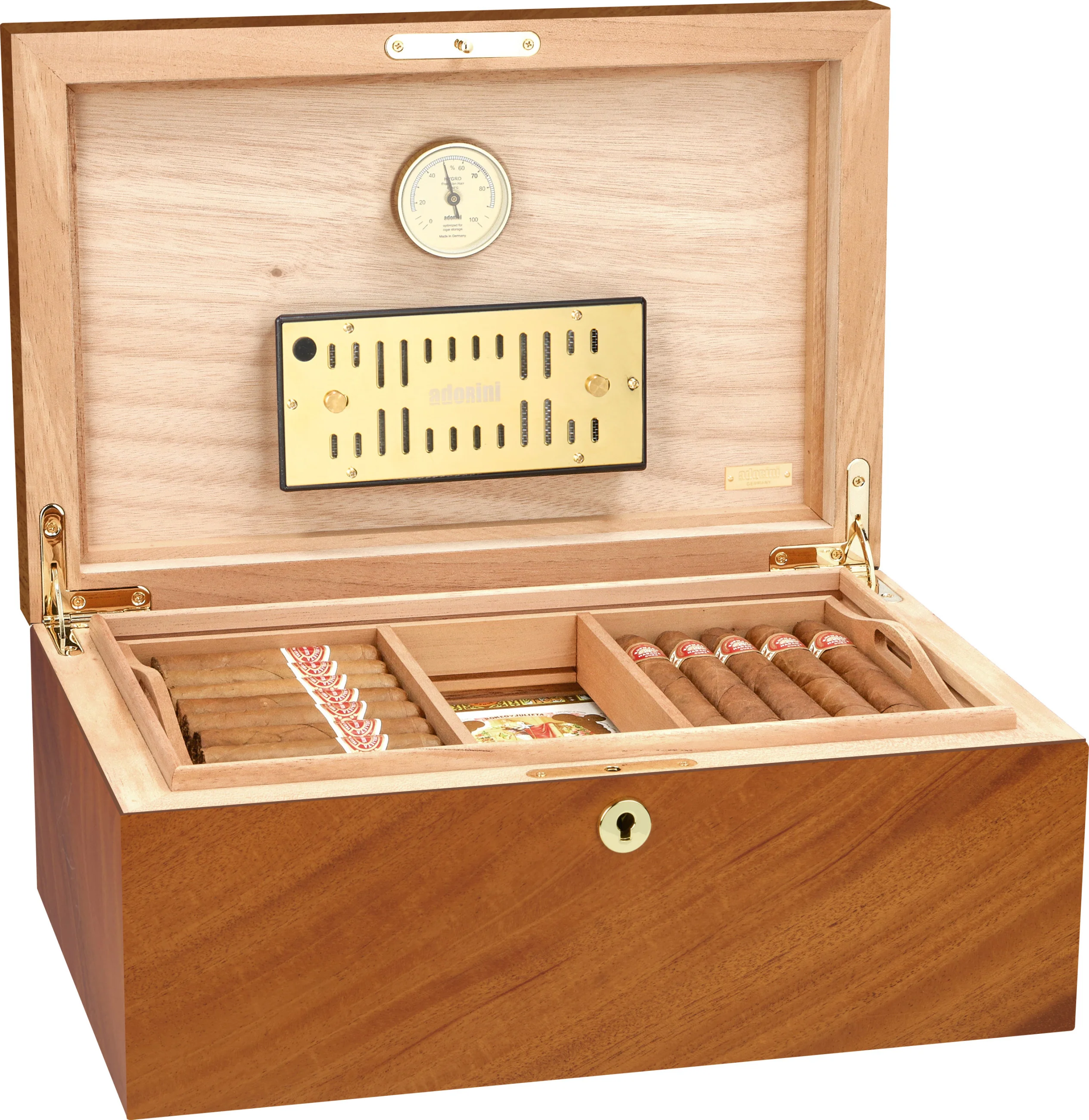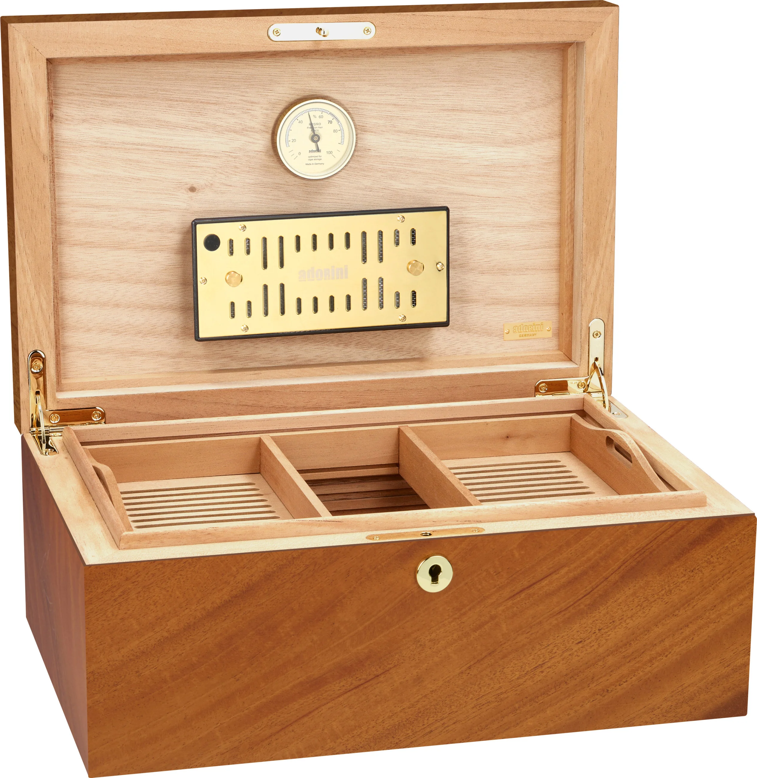 adorini is one of the world's leading brands for humidors. Its products are characterized by high-quality materials, sophisticated design, and innovative functionality. Precise hygrometers and humidification systems from adorini can also be found in the world's most exclusive humidors. Cigar lovers, restaurateurs, and collectors value adorini for its long-lasting quality, stylish craftsmanship, and reliable precision.