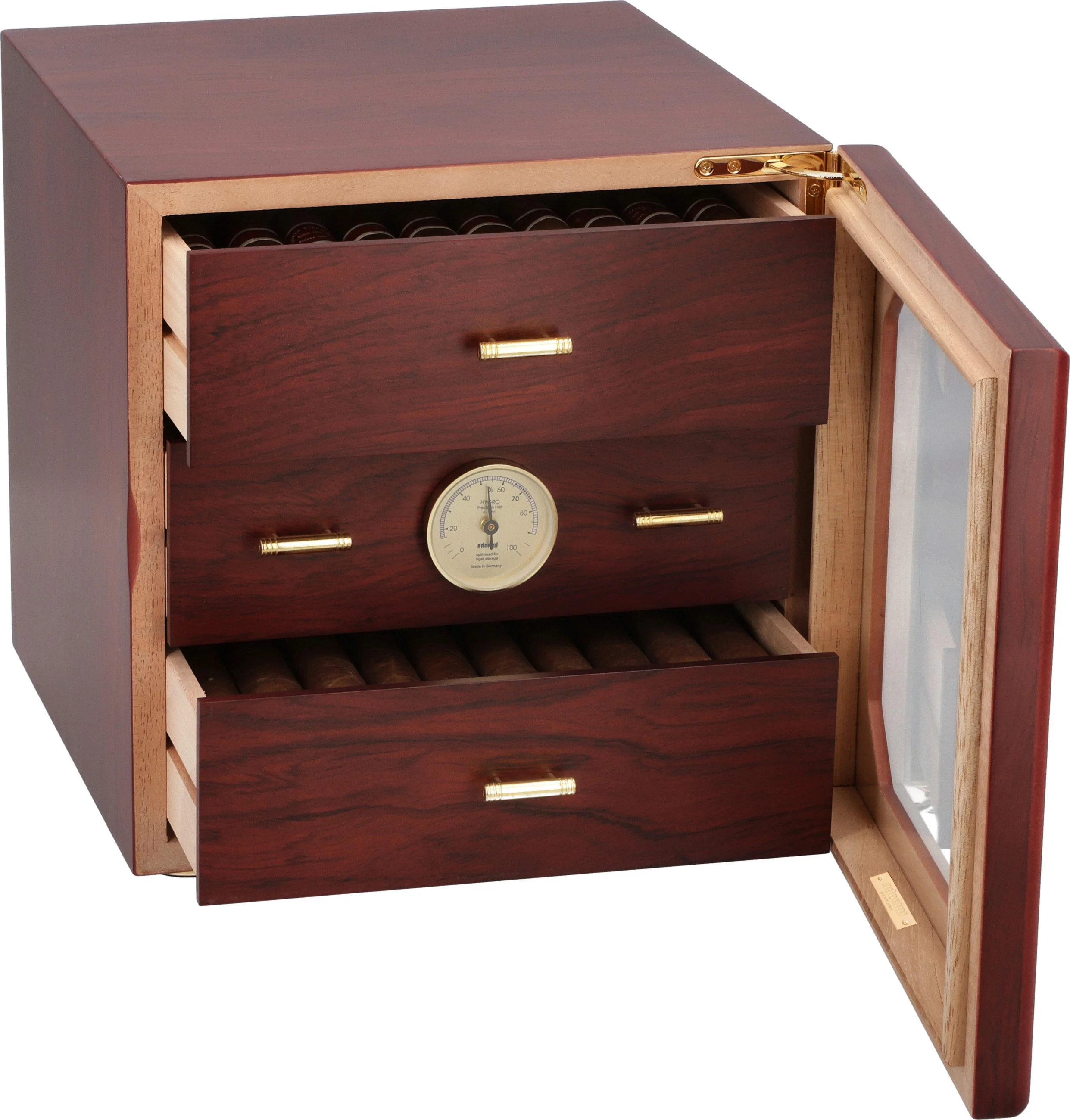 - يمكن تركيب جهاز الترطيب المدرج خلف الدروج بمغناطيس، بحيث يمكن استخدام مساحة كل درج للسيجار
