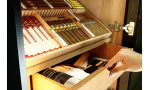درج لإكسسوارات السيجار في منتصف الخزانة على سكة من الفولاذ المقاوم للصدأ مع مساحة تهوية في الجدار الخلفي