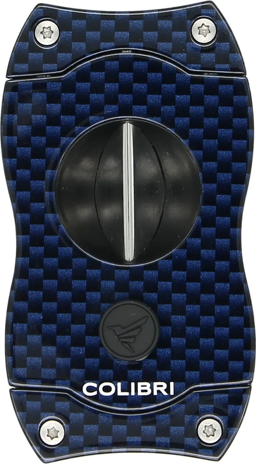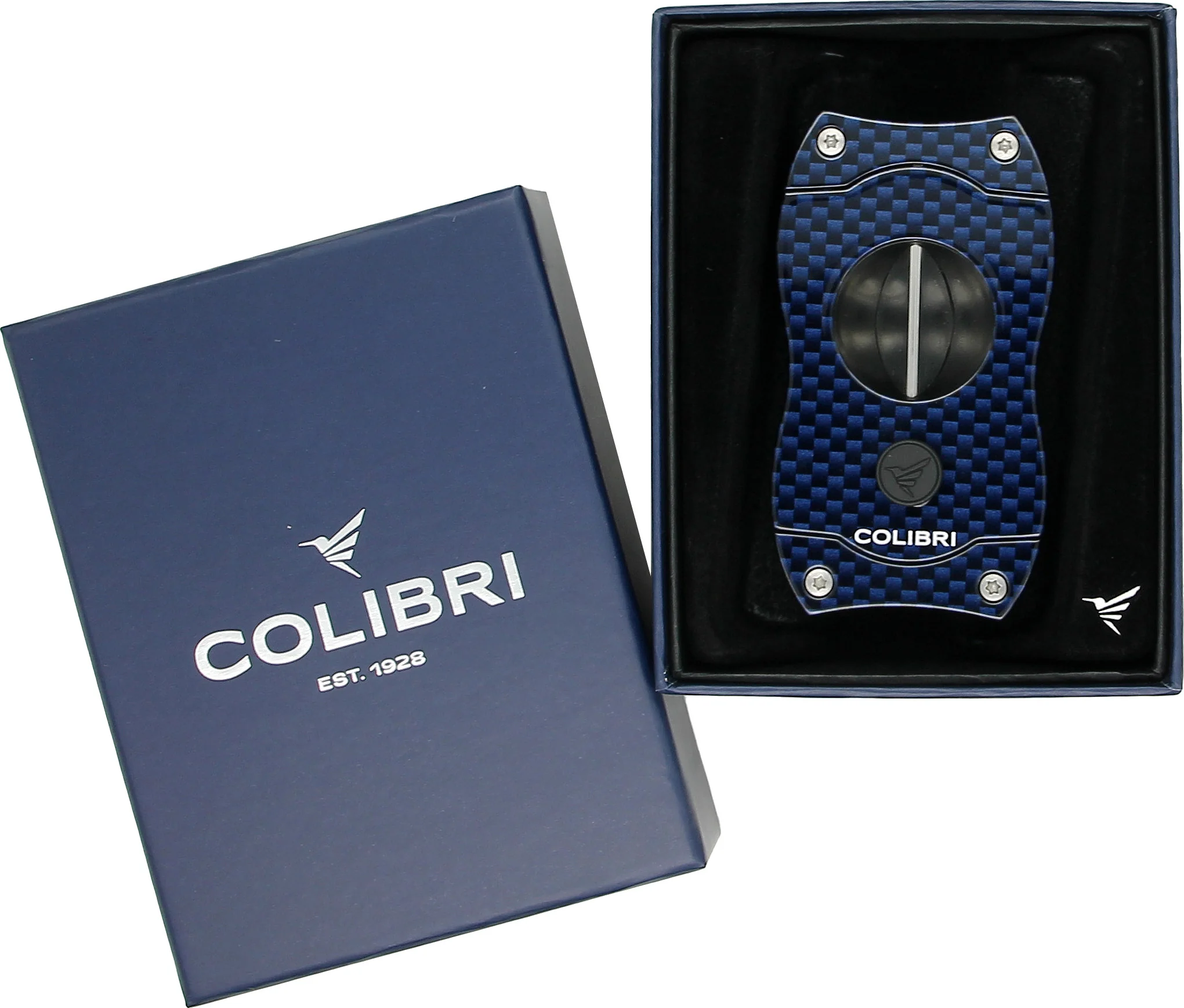 Colibri قطاعة سيجارات على شكل V أزرق كربوني