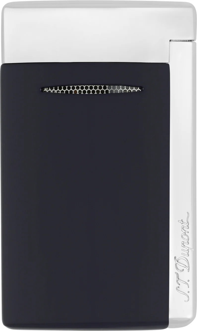 تتميز ولاعة إس. تي. دوبون ميني جيت، باللون الأزرق الداكن مع لمسات من الكروم، بأنها ولاعة أنيقة وعملية، تتميز بلهبها القوي وإشعالها الكهربائي الكهرضغطي. لونها الأزرق غير اللامع مع لمسات من الكروم المصقول يجعلها قطعة أنيقة للاستخدام اليومي.