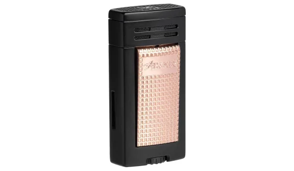 ولاعة Ion ثنائية اللهب من Xikar باللون الأسود والذهبي الوردي هي اكسسوار موثوق وعالي الجودة. وبفضل مظهرها العصري والرياضي الذي يذكّرنا بتصاميم السيارات، فإنها تثير الإعجاب بمظهرها الأنيق والحرفية العالية في التصميم. يمنحها الجسم الأسود غير اللامع والزر الأمامي الوردي الذهبي مظهرًا أنيقًا ولافتًا للنظر.
