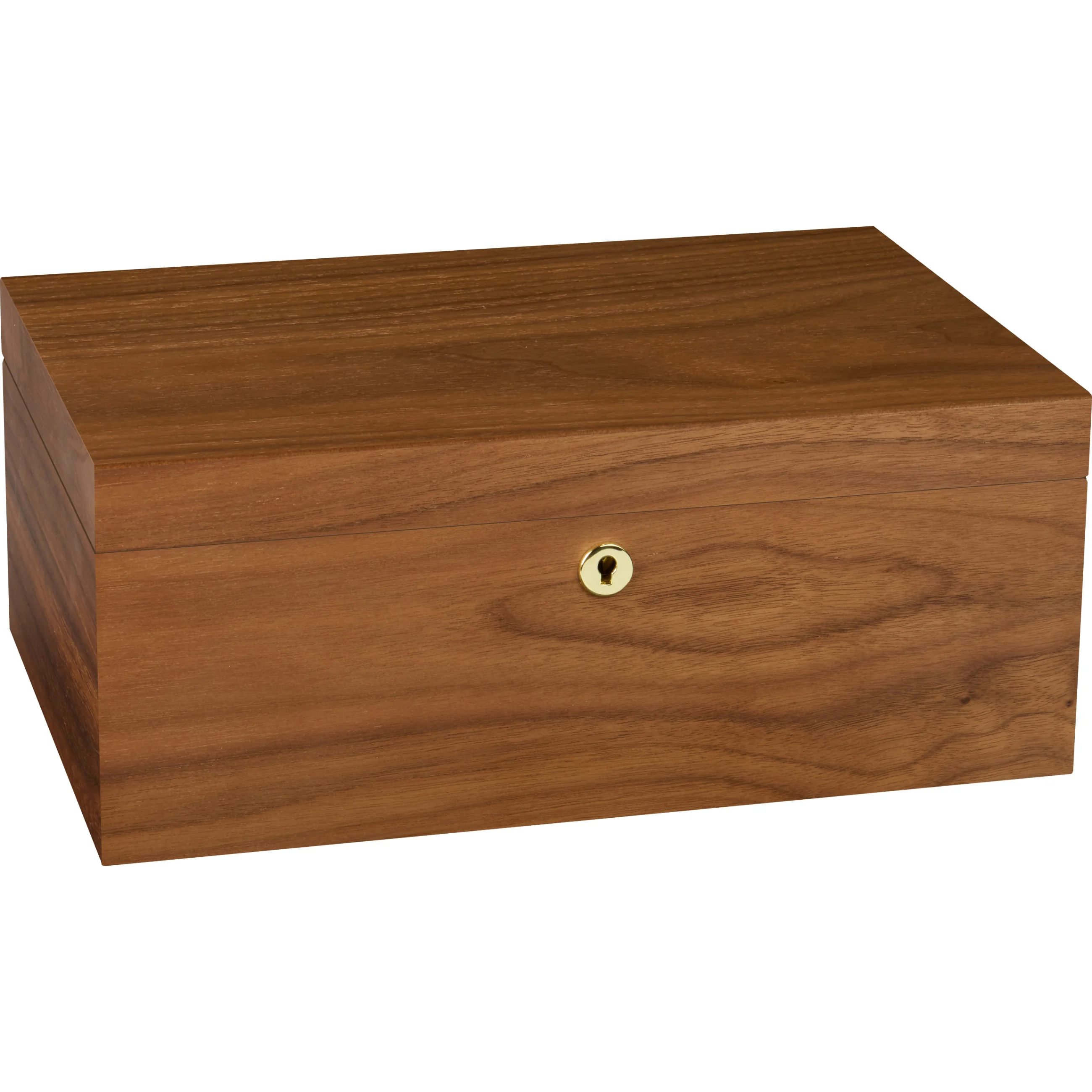 The walnut wood is distinguished by its characteristic grain with warm to dark brown tones. Thanks to its warm and natural appearance, the humidor blends harmoniously into almost any setting. Grande humidors hold up to 150 cigars, providing ample space for your cigar collection.