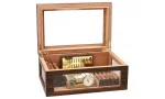 - Проницателен настолен хумидор със стъклени елементи