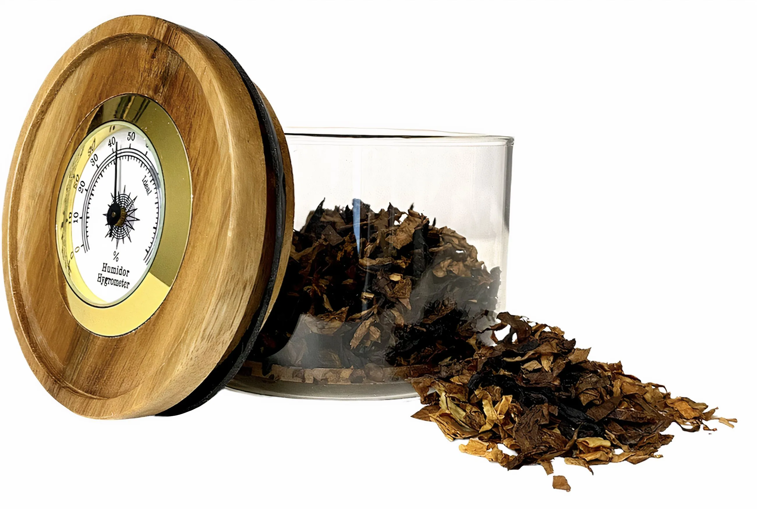 - Стъклен буркан за тютюн с дървен капак