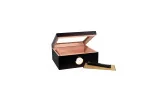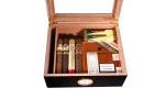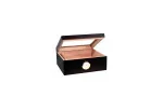 Елегантният хумидор от BigSmoke предлага достатъчно място за ценните ви съкровища с приблизителен капацитет от около 50 пури. Дори малки кутии с пури могат лесно да открият мястото си вътре. Елегантният релеф на хумидора е допълнен от стъклен капак, който позволява гледка към вътрешността без да се налага да бъде отварян. Базиран на метална спирала аналогов влагомер е вграден в предната част и може да се разчете лесно по всяко време. Включеният цилиндричен овлажнител работи въз основа на акрилно-полимерни кристали и гарантира постоянно ниво на влажността. Вертикалният разделител позволява гъвкаво разделение и организация на интериора. За да защити мебелите, върху които бива поставен хумидора, основата му е покрита с филц.