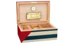 - Елегантен дизайн: Спиращият дъха мотив на кубинското знаме украсява повърхността на този хумидор, придавайки му отличителен културен привкус. Прецизно изработените дървесни зърна остават видими въпреки гланцирания лак, придавайки на хумидора уникална, естествена естетика.