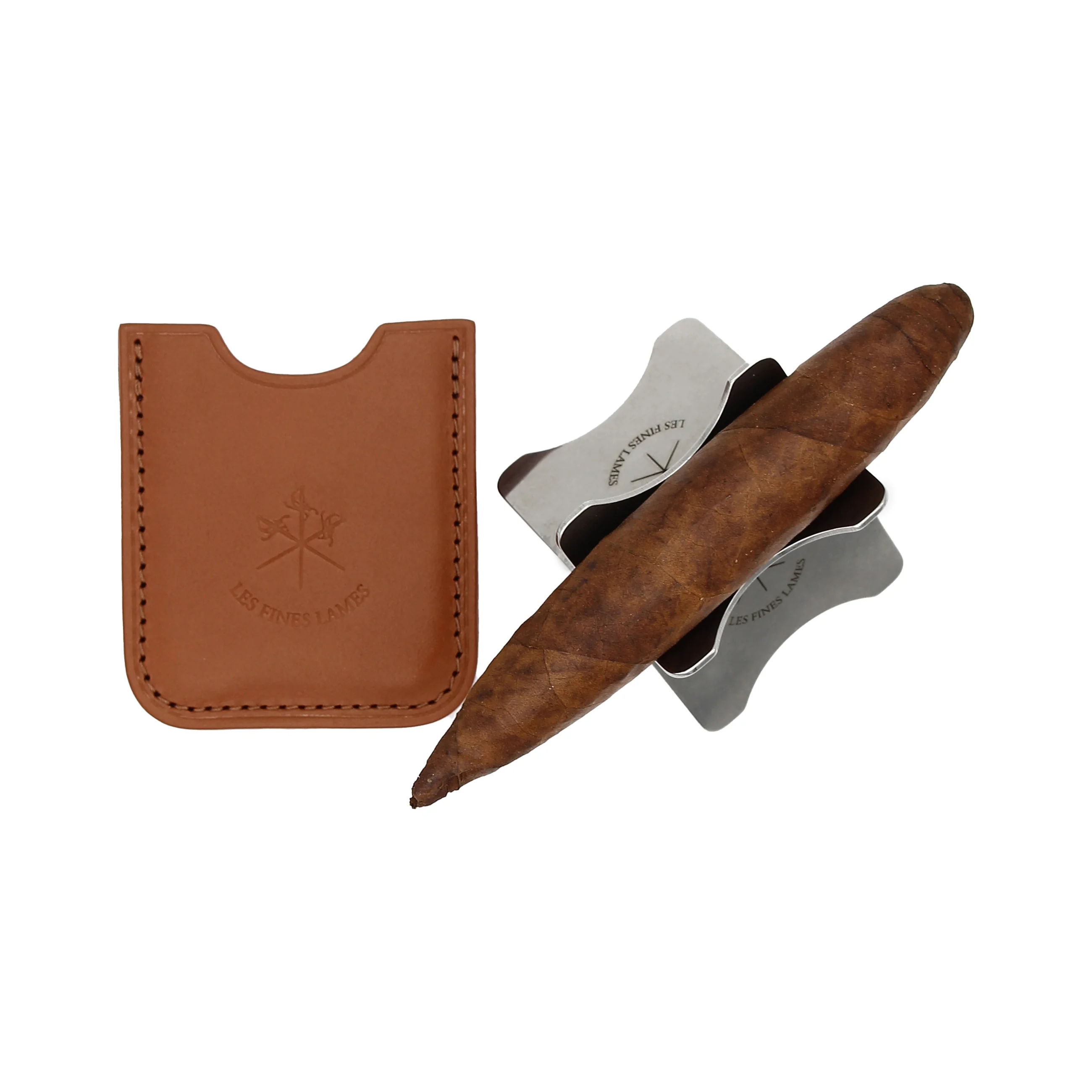 Пейка за пури „Les Fines Lames“ с кожен калъф в цвят „тан“