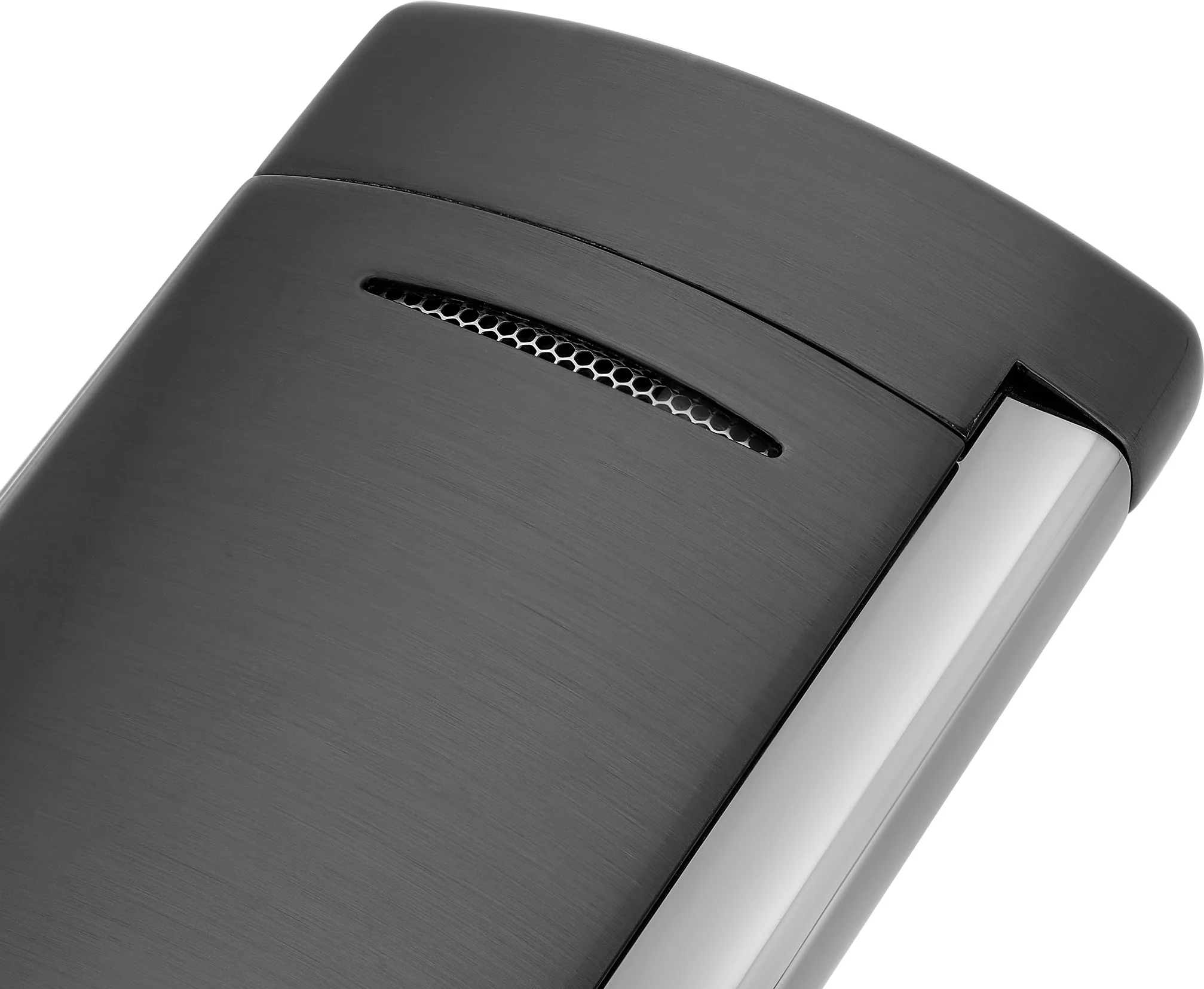 Запалката S.T. Dupont Minijet в матиран пистолетен метал с лъскави акценти е изискана и удобна запалка, която впечатлява с мощния си струен пламък и електрическото пиезозапалване. Матираната повърхност с полирани хромирани акценти я превръща в стилен аксесоар за ежедневна употреба.