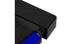 Запалката се отличава с уникална шарка гилош с полуматово черно покритие, което се усеща като копринено. Неоновосиният ролер осигурява поразителен и динамичен елемент на дизайна.