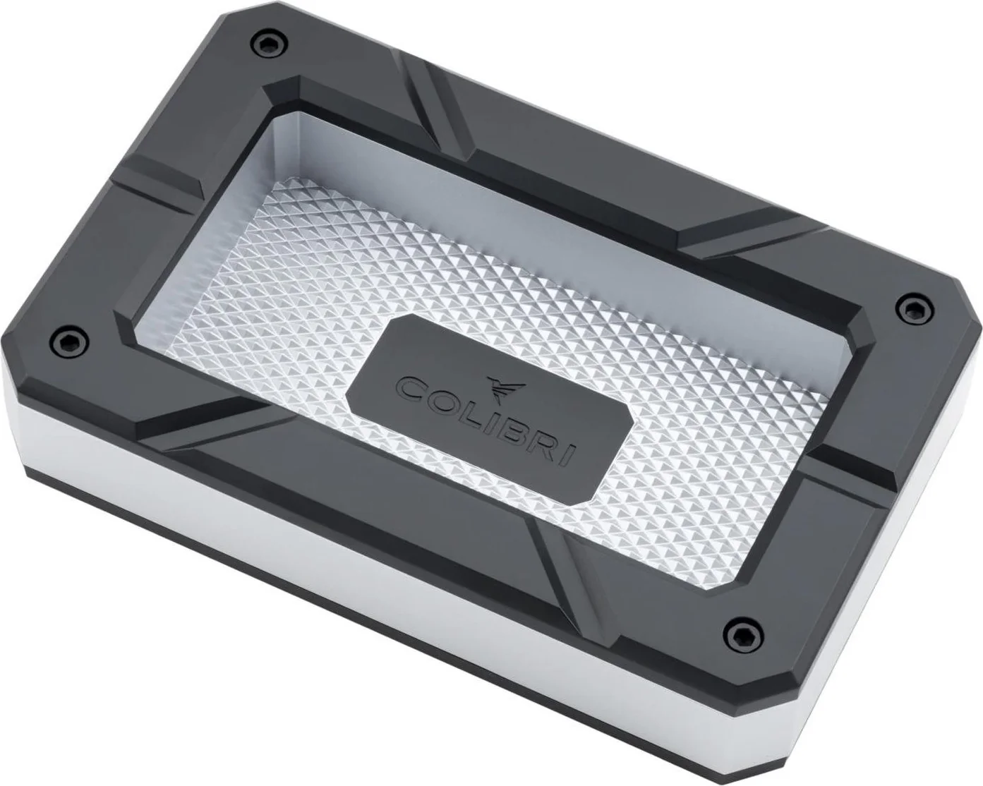 The Colibri Rally Cigar Ashtray in black and silver is a modern cigar ashtray from the Colibri brand. Made of aluminum, this ashtray boasts a futuristic design reminiscent of racing components. Clean lines, an angular design, and striking screw elements define its distinctive appearance, giving the ashtray a technical yet modern look.