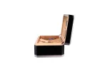 With a capacity of around 100-125 cigars, the humidor offers enough space for your collection. Inside, two flexibly insertable or removable vertical dividers ensure optimal organization. The included digital hygrometer enables precise measurement of the humidity, with the required button cell battery already included. Humidification is provided by a passive humidifier, which is stylishly attached to the lid in a magnetic wooden holder. The silver soft-close hinges perfectly round off the high-quality overall appearance.