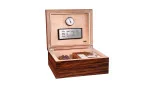 모던하고 기능적인 아도리니 브랜드의 베이직 시리즈 M 사이즈 휴미더는 무광 흑단 표면과 다용도성이 인상적인 제품입니다. 약 75개비 이하의 시가를 보관할 수 있는 공간으로 시가를 안전하게 보관할 수 있는 이상적인 솔루션을 제공합니다. 제공 범위에는 아날로그 습도계와 패시브 스펀지 가습기가 포함되어 있습니다. 습도계는 금속 나선형을 기반으로 습도를 측정하며 가습기와 함께 휴미더 뚜껑에 자석으로 유연하게 부착됩니다. 휴미더 내부에는 무광 실버 힌지와 특히 강력한 밀봉 립이 있어 습도를 최적으로 유지할 수 있습니다. 수직 칸막이로 내부를 추가로 분할할 수 있습니다.