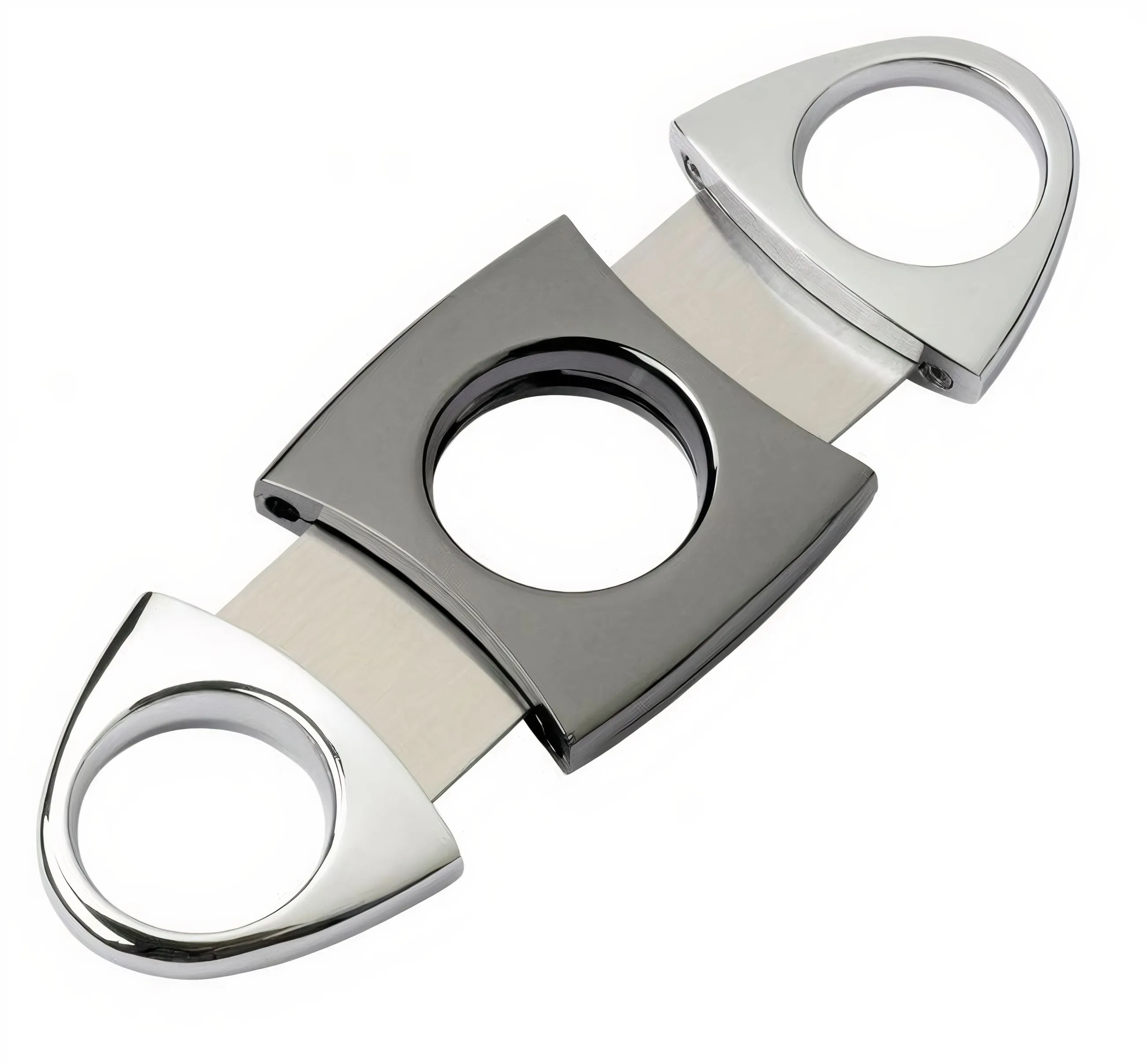 세련된 길로틴 커터는 무게가 아름답게 균형 잡혀 있으며, 두 개의 날카로운 스테인리스 스틸 날로 구성되어 있어 최대 54링 게이지의 시가를 가장 정밀하고 쉽게 절단할 수 있습니다. 커터의 넓은 핑거 그립은 넉넉한 공간을 제공하여 매번 빠르고 편안한 커팅 동작으로 시가를 자를 수 있습니다.