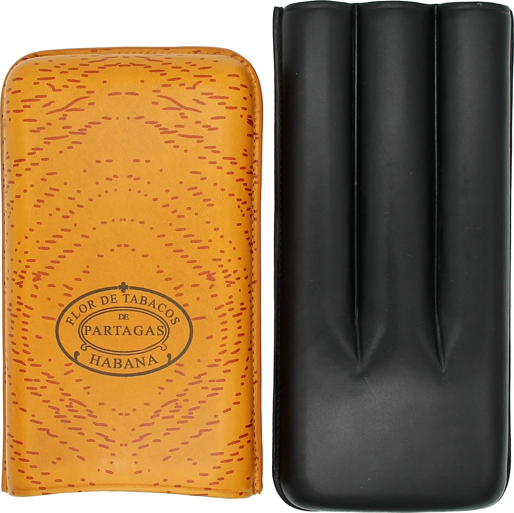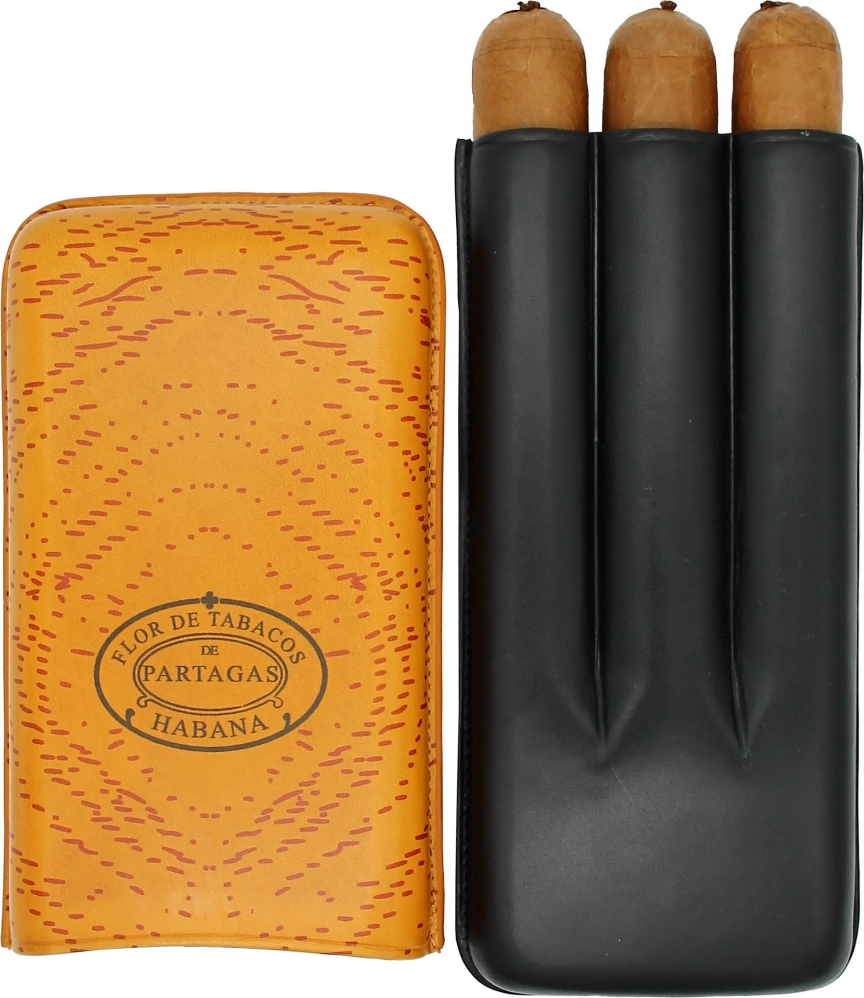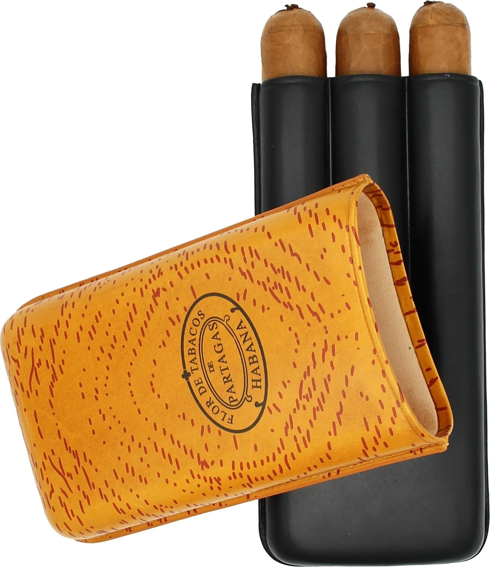 파타가스 클래식 시가 케이스 가죽 오렌지 및 블랙 3피스.