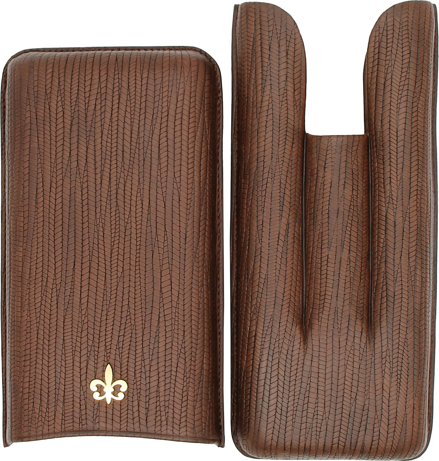 Montecristo Fleur de Lis Leather Cigar Case, Brown, for 3 Cigars