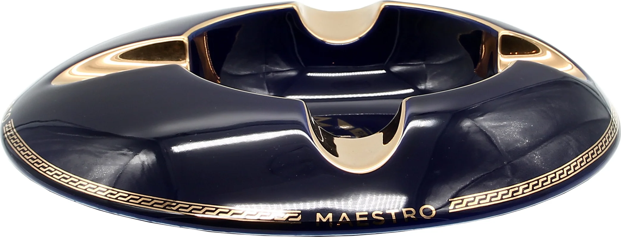 The Partagás Ashtray Línea Maestra is a striking accessory from the prestigious premium line of the Cuban cigar brand Partagás. Finished in deep blue and adorned with elegant gold accents, this ashtray exudes a special exclusivity. Designed by Nelson Alfonso for Habanos S.A., it combines artistic craftsmanship with the brand's signature expressiveness.