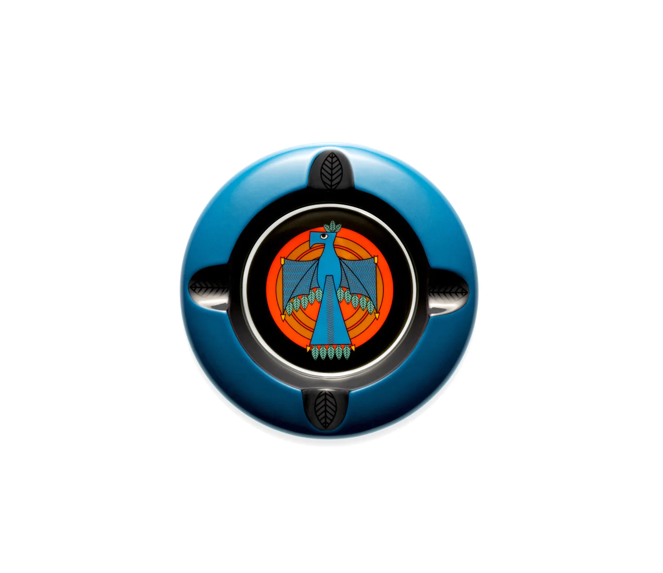 About the Ashtray: The ashtray comes in a distinctive blue color, echoing the vast sky and the mythical nature of the Thunderbird. The Totem Thunderbird Ashtray, with a diameter of 21.5 cm, a height of 4.5 cm, and a lustrous finish, stands as a captivating piece inspired by a legendary creature. Its four cigar rests add a practical and stylish element, making it an exceptional accessory for enthusiasts seeking a touch of myth and sophistication in their cigar experience.